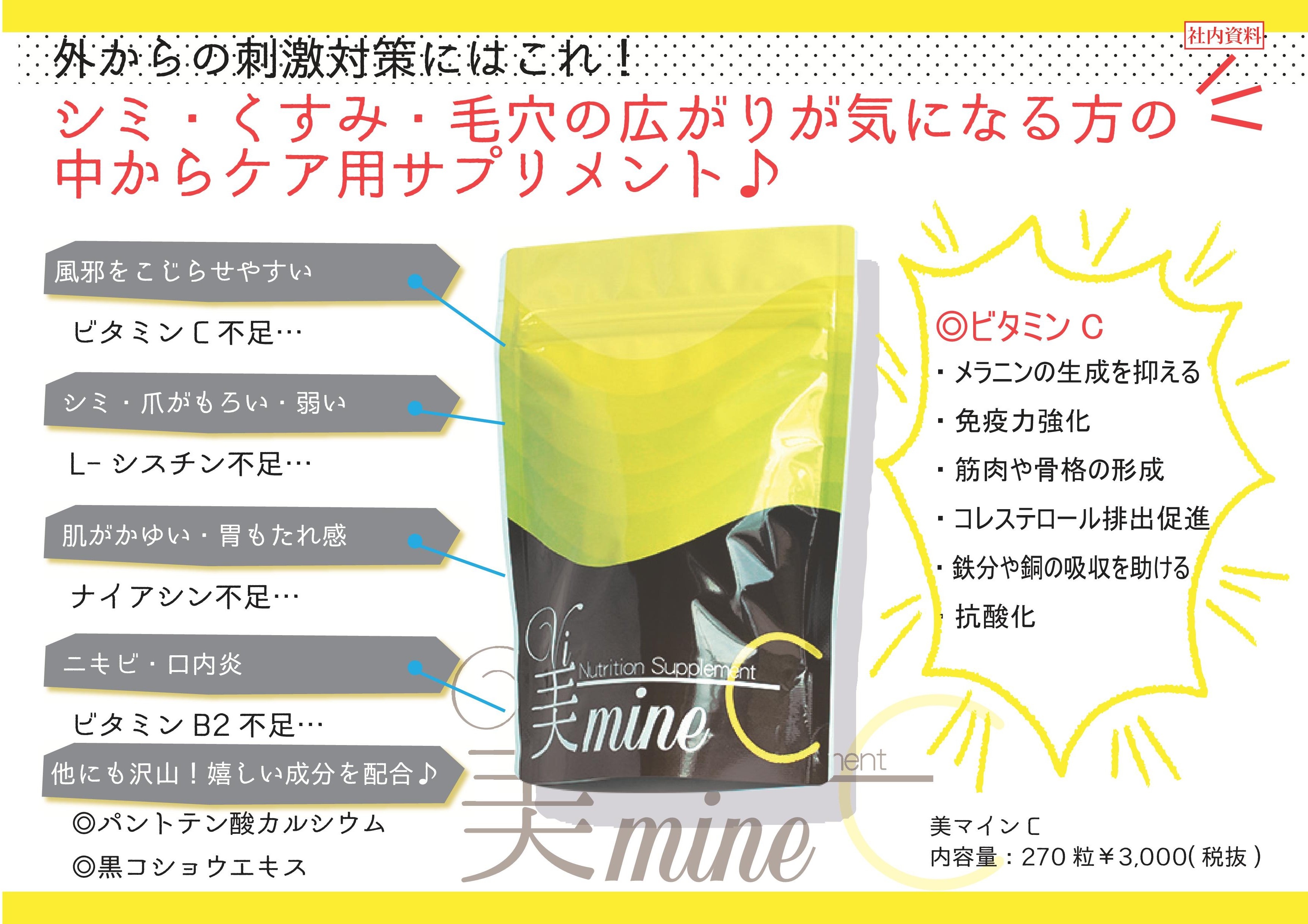 ビタミンCは、体内で作られない栄養素です。簡単に毎日続けられる栄養機能食品でお肌と体をケアしましょう。